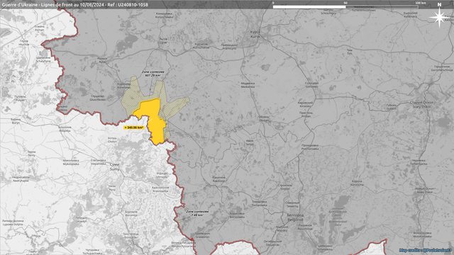 目前估計烏克蘭佔據 (+ 340.56 km2 )的庫斯克區域