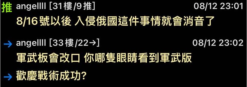 → whitertiger : 謂烏軍大量損害搞不好一大堆都是俄國的,假資訊太多 08/20 02:43