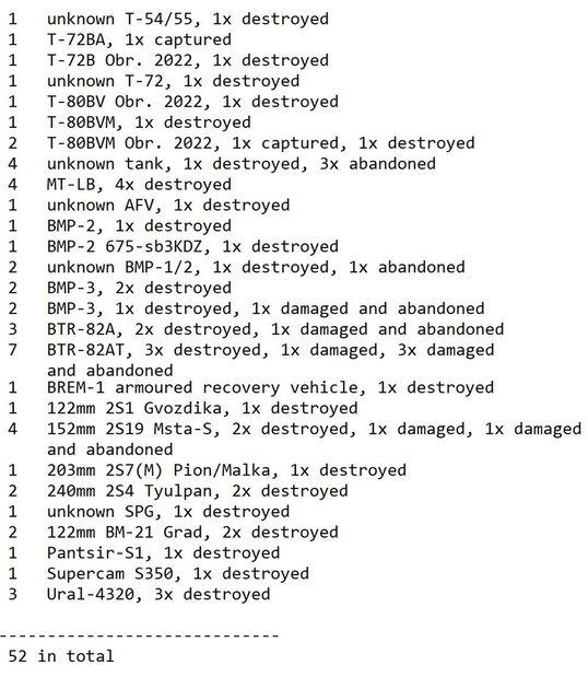 目視確認損失軍事裝備統計 2024.08.16 ~ 08.18