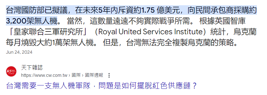 推 lcy317 : 無人機的保養跟消耗成本太貴了 不可能屯太大量軍用 08/20 01:01