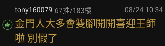 推 tony160079 : 「金門人」大多會「雙腳開開喜迎王師」啦 別假了