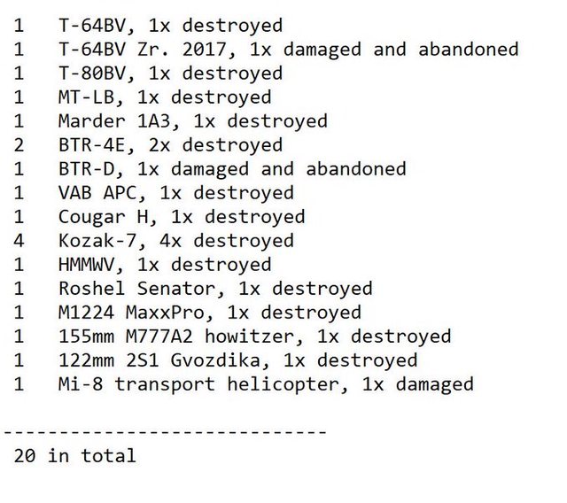 目視確認損失軍事裝備統計 2024.08.22 ~ 08.24