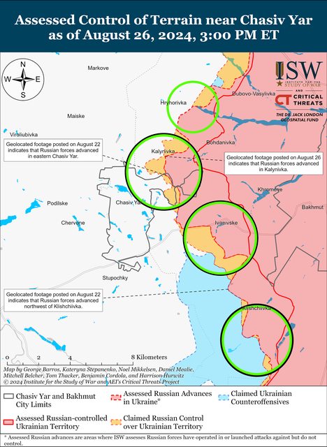 8 月 26 日,俄羅斯軍隊在 Chasiv Yar 以北