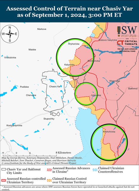 9月1日,俄羅斯軍隊繼續在Chasiv Yar方向