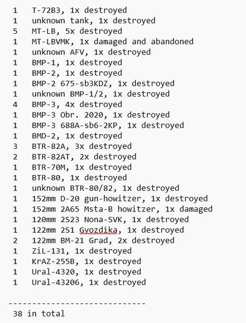 目視確認損失軍事裝備統計 2024.09.03 ~ 09.05