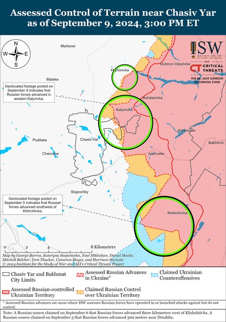 9 月 9 日,俄羅斯軍隊在 Chasiv Yar 附近