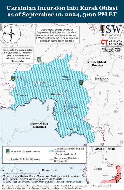 9 月 10 日,烏克蘭軍隊在庫斯克繼續發動