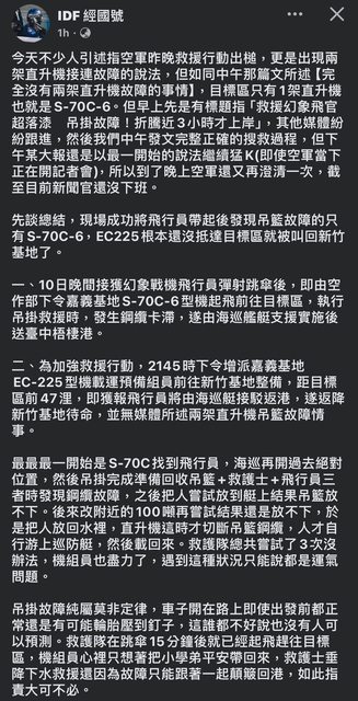標題Re: [新聞] 畫面曝!空軍直升機吊籃竟故障卡半空中…