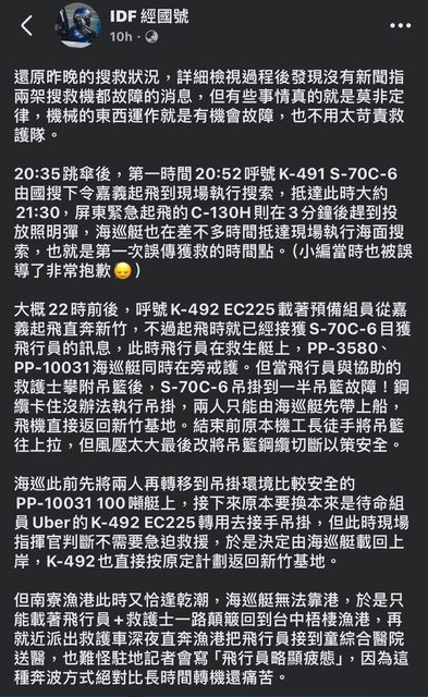 : 推 n0venblue : S-70先找到絕對位置才呼海巡過去,搜救現場很複雜 09/11 23:01