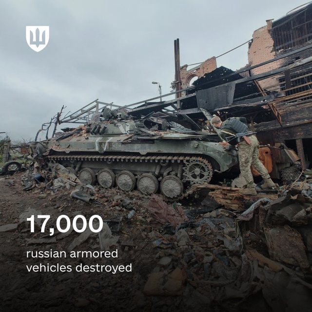 自全面入侵開始以來,已有17,000輛俄羅斯