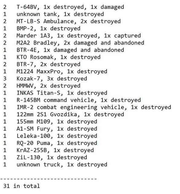 運兵車和 2 輛摩托車)被摧毀,11 輛 BMP