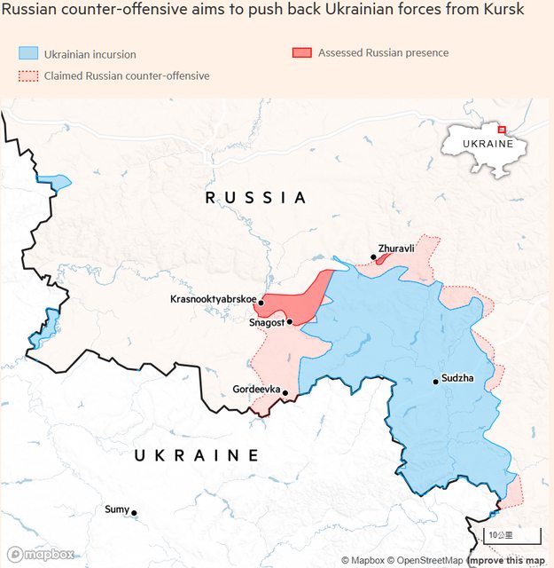 俄羅斯週三在庫斯克發動反攻,並聲稱迅速