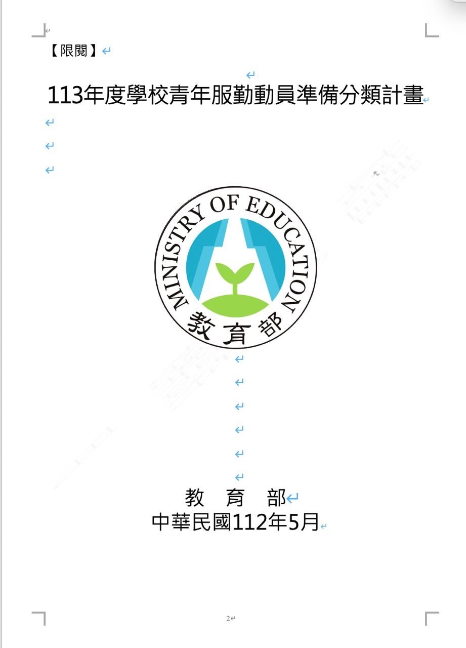 : 教育部表示,教育部訂「113、114年度學校青年服勤動員準備分類計畫」,已明確規範需