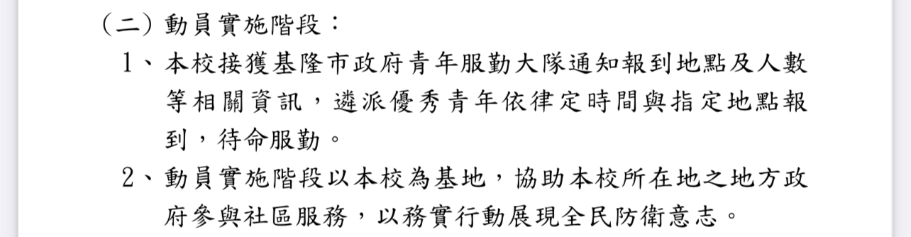 推 afv : 網路上就能找到各校寫的青年服勤動員準備計畫了 10/18 15:28