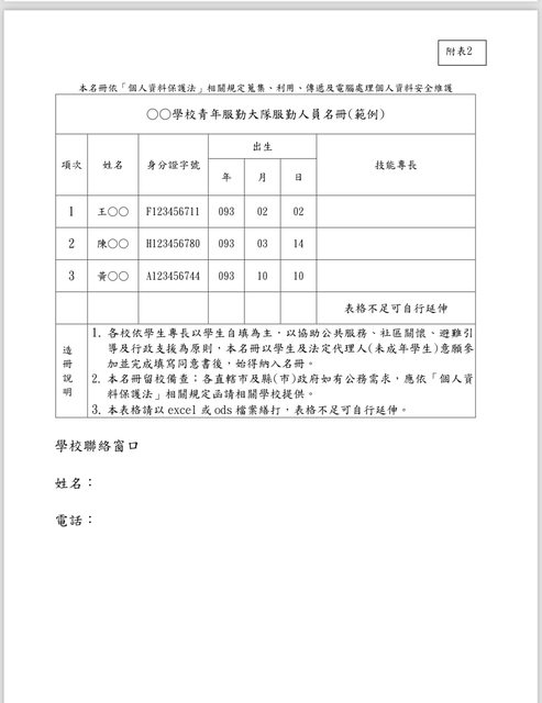→ ja23072008 : 名冊範例身份證字號和出生年月日是照抄沿用。但動 10/18 22:28
