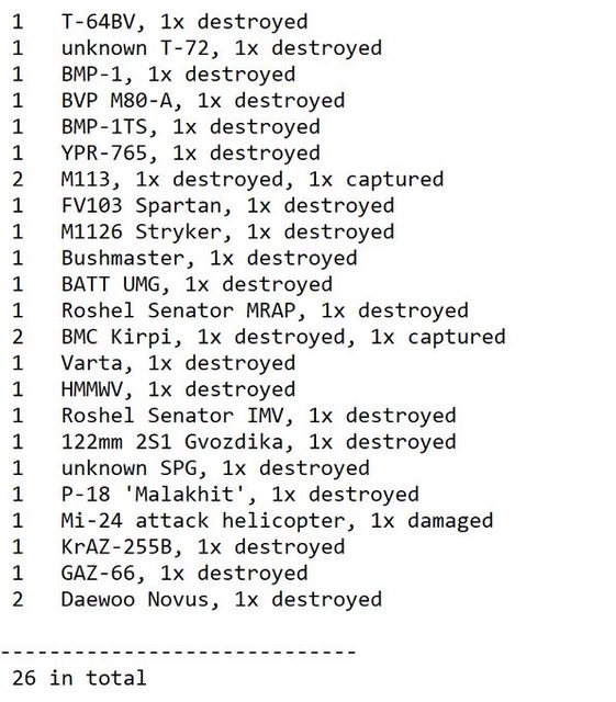 目視確認損失軍事裝備統計 2024.11.01 ~ 11.04