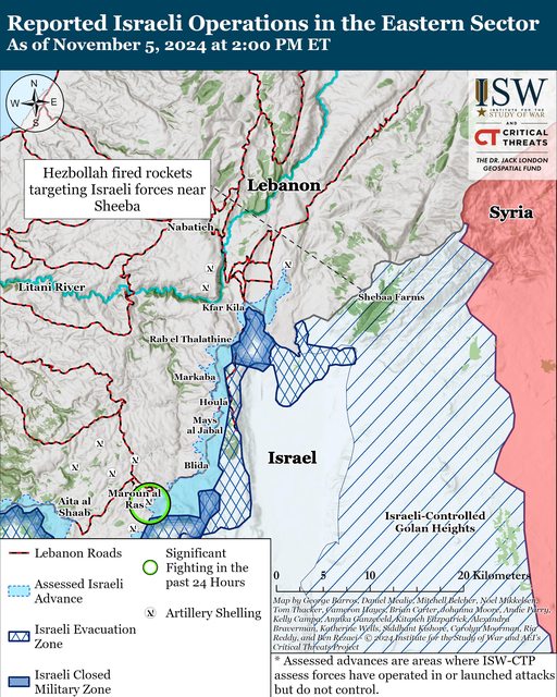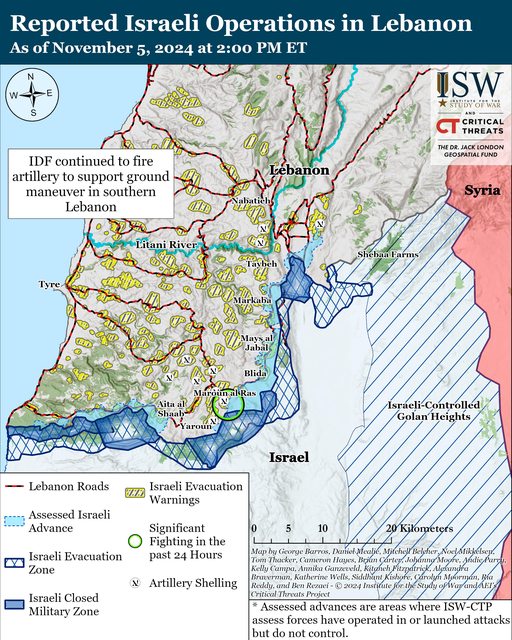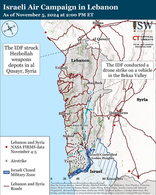 黎巴嫩消息人士稱,自 11 月 4 日 CTP-ISW