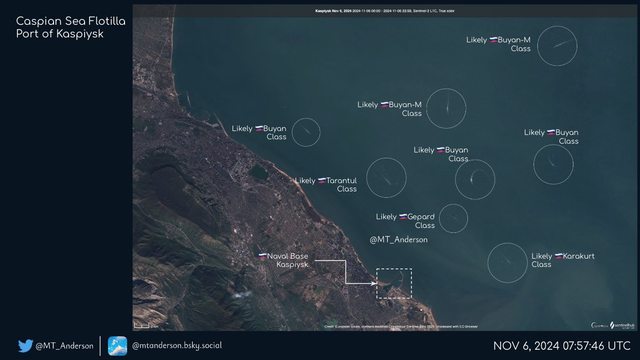 距離前線約 670 英里(大約1080公里)的Kaspiysk軍港