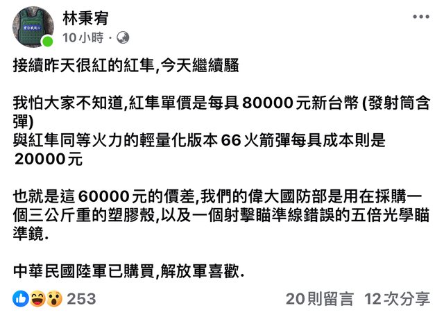 → jobli : 美軍單兵反甲火箭1200美金台幣3萬多一支 11/08 12:37