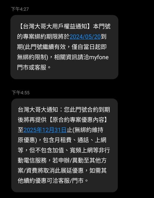 : 簡訊意思是,你無合約了,照理說優惠部份要取消了(沒5G吃到飽),現在繼續給你原本