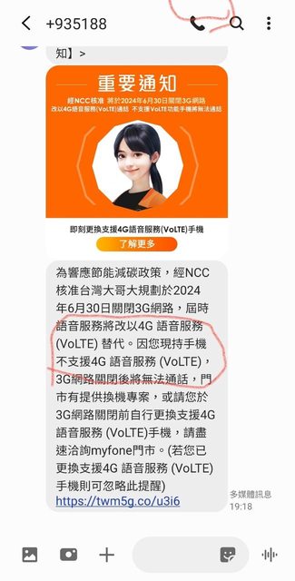 → pda2001 : 3G關台後 就是靠VOLTE取代通話 簡訊服務 04/24 13:23