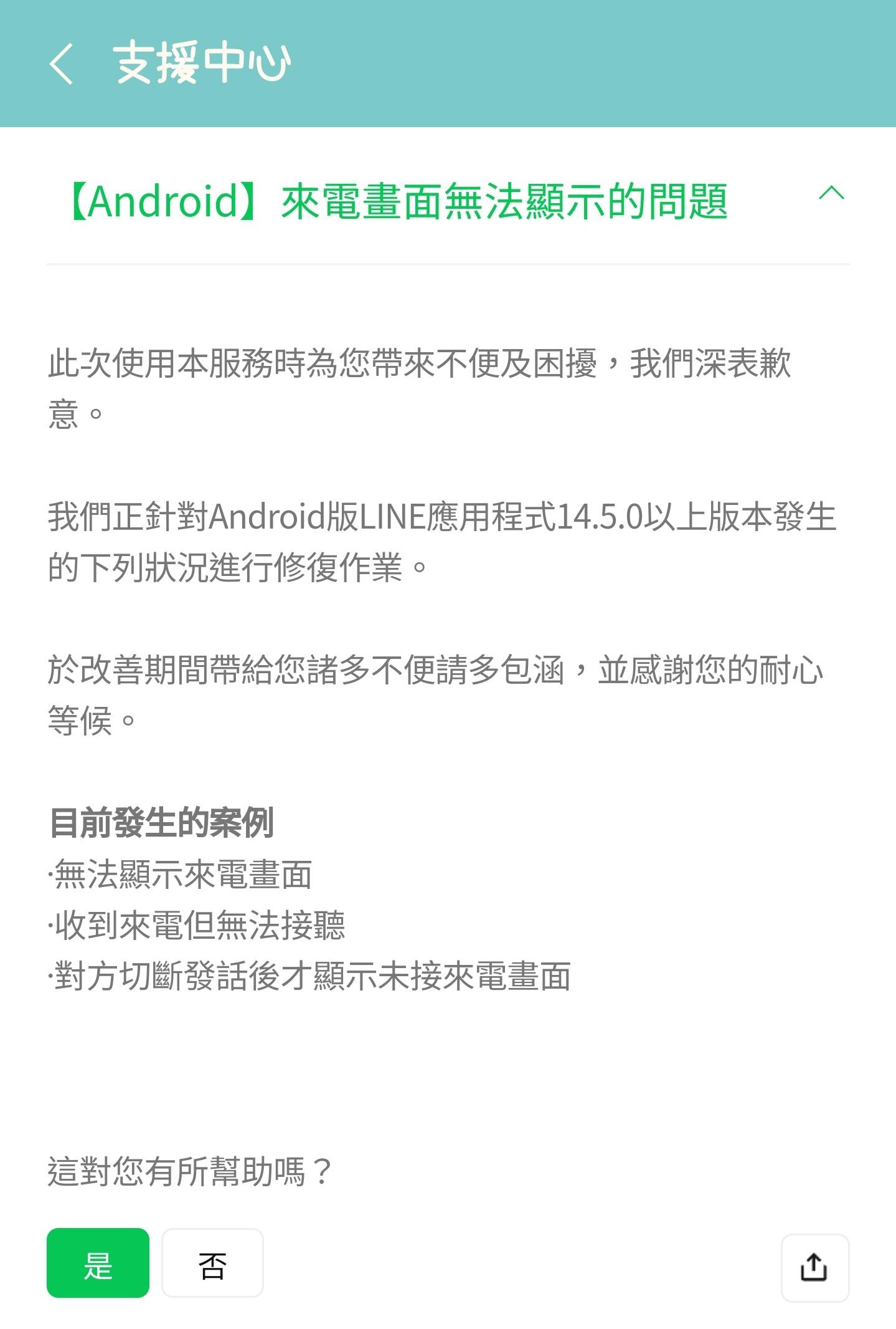 推 tnfsh01008 : 到line的設定裡找 點通話 打開來電提醒05/06 16:12