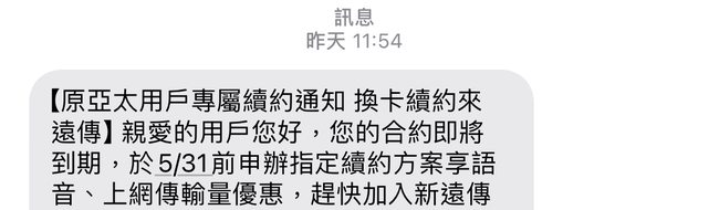→ ysmsy : 結束後就跳走了,遠傳完全沒有想要留住原亞太客戶 05/11 09:33
