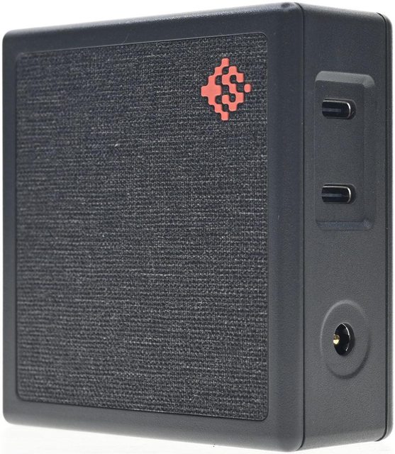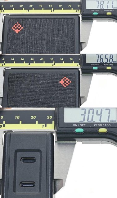 ▼充電器頂部有2個USB-C輸出埠及1個DC插座,底部印上商標、SlimQ字樣、GaNFast標誌