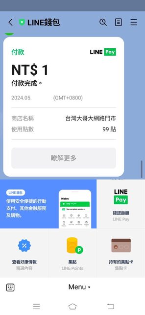 → OSullivan : 綁好Linepay 去外面付款就可以直接把Line Point用掉05/17 16:53