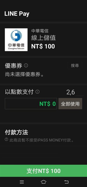 但是在門市現場繳交電信費方面,並沒有LINE PAY的選項,目前僅能使用現金繳費,或在各