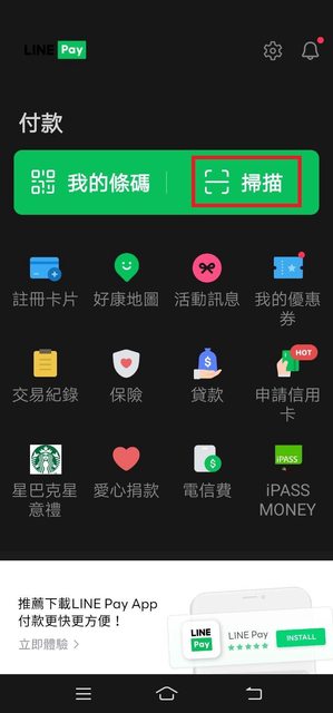 B1-6.掃行動條碼 QR Code時,請選擇LINE APP右下方的錢包,