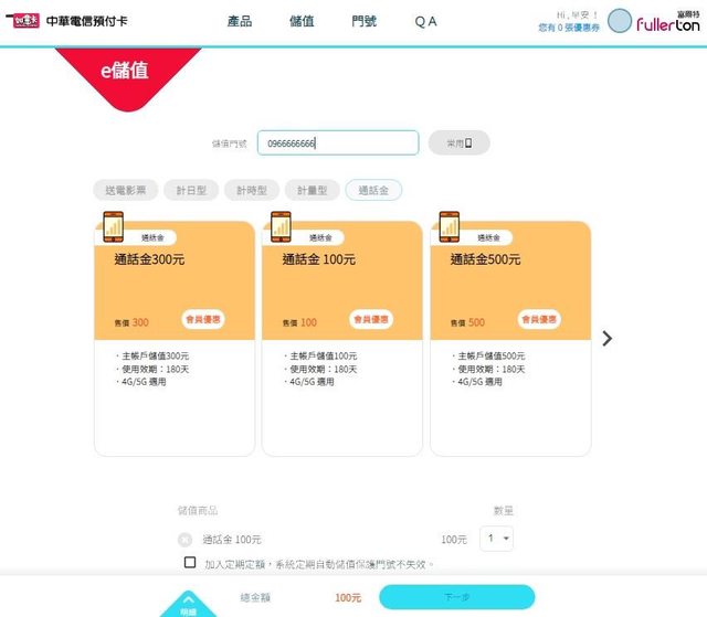 B2-2.輸入儲值門號後,選擇通話金部分。