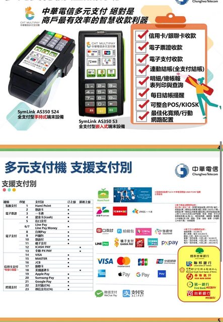 其實中華電信有提供一款多元支付機,配合中華電信寬頻行動網路,來推廣電子化支付的普