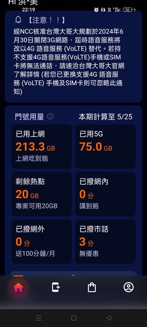 → aabbc777 : app的話點選帳單也能看近一年各期詳細通話流量記錄 05/23 02:38