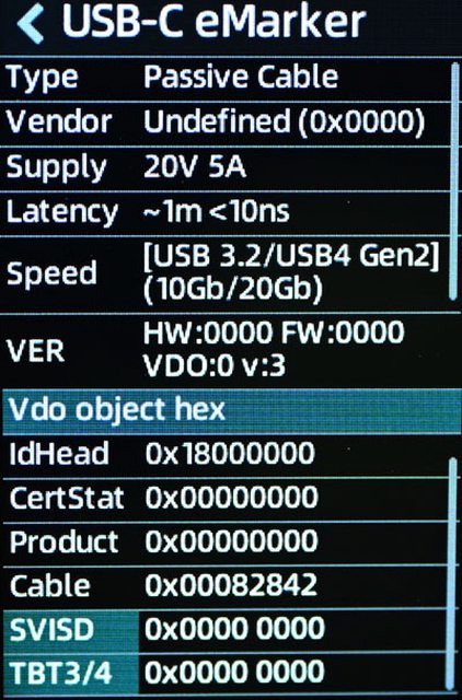 ▼E-Marker資訊,電力傳輸支援20V/5A 100W,資料傳輸支援USB3.2(10Gbps)/USB4