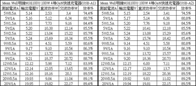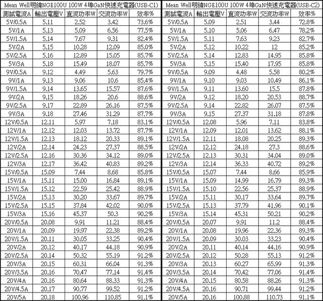▼C1/C2單獨使用下各組輸出轉換效率表,整體輸出轉換效率在72.8%至91.4%之間