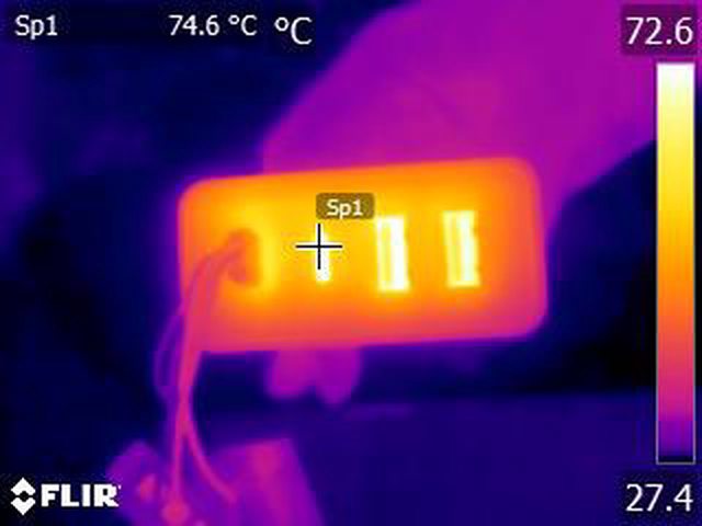 ▼C1輸出100W一小時後充電器輸出埠的紅外線熱影像圖