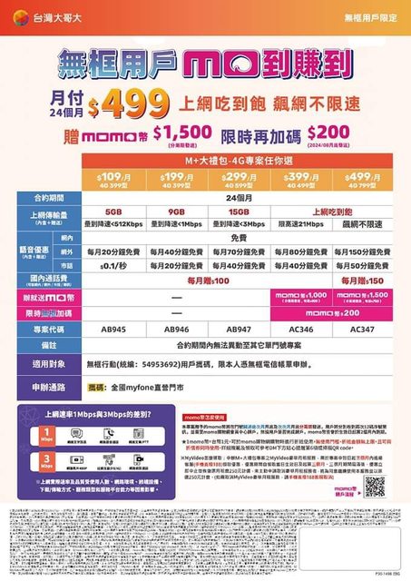 推 Jasonshue : 剛去了台中直營門市要辦499不限速,搞了半天,無框 06/08 14:51