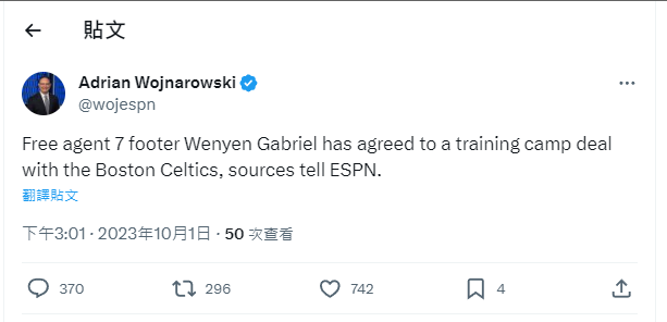 → EZ78 : 笑死 Woj寫錯說他是7尺10/02 03:03