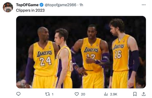 推 ohsho62 : 湖人那是1245五門齊,快艇拿到1123 問題陣容 11/13 12:30