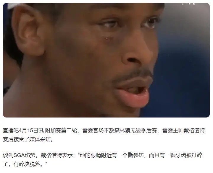 → desion30 : SGA兩年前附加賽打灰狼輸掉是被幹掉一顆牙齒眼睛下 03/25 20:15