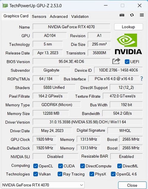顯示卡:GIGABYTE RTX 4070 GAMING