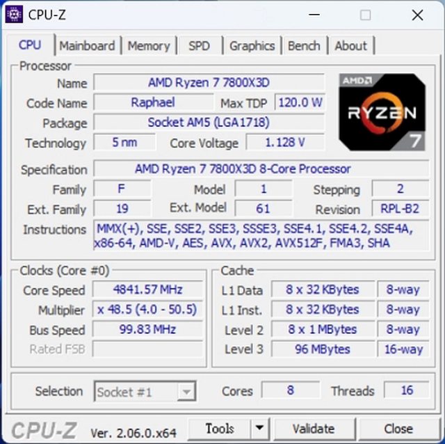 處理器:AMD R7 7800X3D