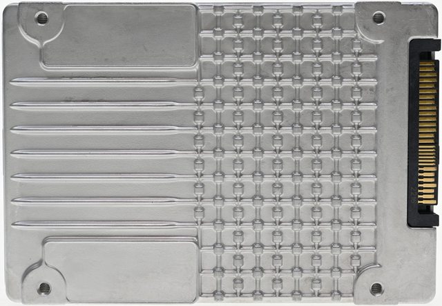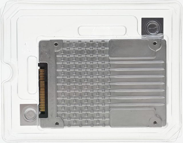 定用螺絲孔,其中1個短邊側面有1個小開孔,另1個短邊側面有U.2(SFF-8639)連接器
