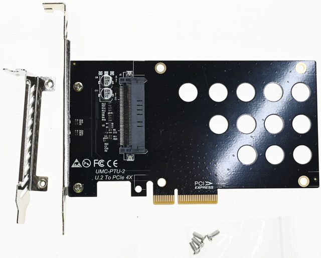 ▼要把U.2裝置安裝在一般主機板上,需要使用U.2轉PCIe x4卡,這次使用的轉接卡提供