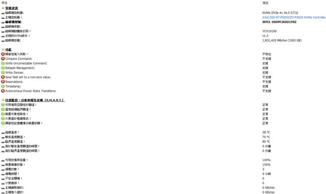 ▼Intel D5-P5530 U.2 Gen4 NVMe 1.92TB SSD的CrystalDiskInfo資訊內容