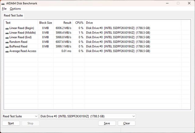 ▼Intel D5-P5530 U.2 Gen4 NVMe 1.92TB SSD的AIDA64 Disk Benchmark讀取測試