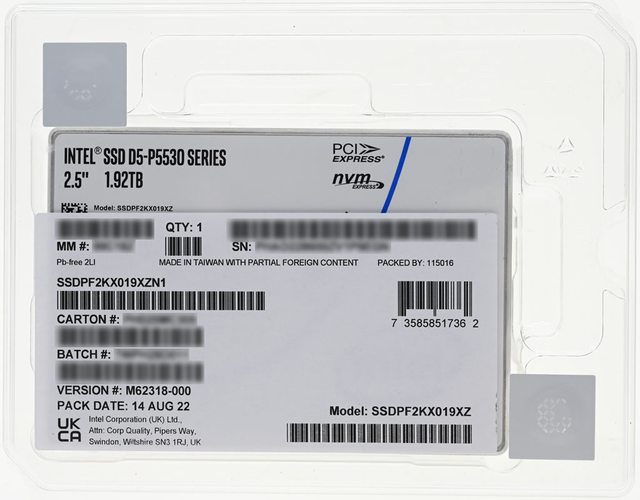 標題: [心得] Intel D5-P5530 U.2 Gen4 NVMe 1.92TB