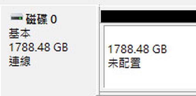 ▼Intel D5-P5530 U.2 Gen4 NVMe 1.92TB SSD在Windows磁碟管理內實際可用容量為