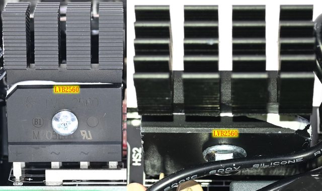 ▼電源供應器滿載輸出下橋式整流/檢流電阻(上圖)及APFC MOSFET/APFC DIODE/APFC電感